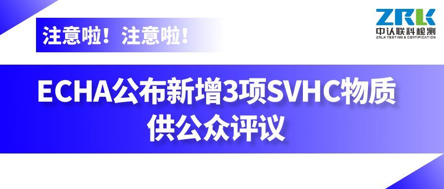 2025年9月1日,歐盟化學品管理局(ECHA)公布了新一批SVHC咨詢物質清單,對3項潛在的SVHC物質展開公眾評議。公眾評議于2025年10月16日結束,在此期間各利益相關方均可向ECHA提交評議意見。ECHA將會對公眾提交的反饋意見進行評議,如這3項物質通過評議將被加入SVHC正式候選清單。