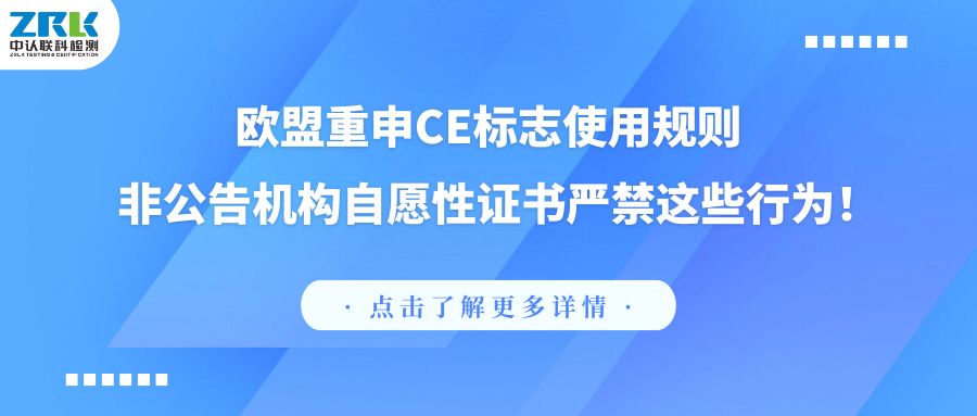 近日,為消除消費者對證書性質的誤解,確保CE標志作為歐盟強制性符合性聲明的權威性和清晰度,歐盟再次重申了2022年6月29日發布的CE標志的使用規則COMMISSION NOTICE《The ‘Blue Guide’ on the implementation of EU product rules 2022》。該規則特別指出:自愿性證書中不得使用“certification”、“independent third party”等字樣,且嚴禁出現CE標志。